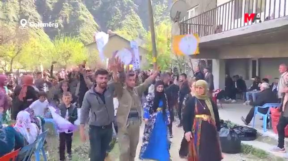 Köyde yapılan bir düğünü ziyaret eden HDP'liler burada yerel kıyafetler giyen kişiler tarafından karşılandı.