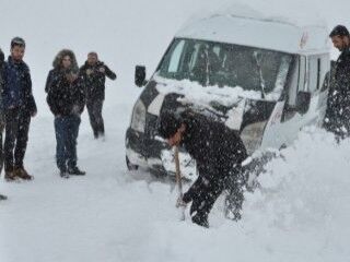 Bunun üzerine harekete geçen ekipler, yaklaşık 2 saat süren mücadelenin ardından mahsur kalan öğretmenlerin içinde bulunduğu minibüse ulaştı. Minibüs karlı ve buzlu yolda ilerleyemeyince, öğretmenler köye geri dönmek zorunda kaldı.