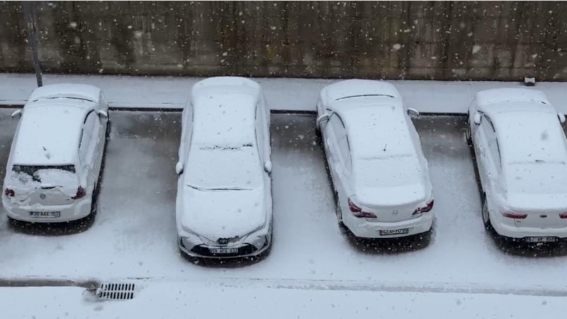 Özellikle park halindeki araçların kar altında kalması gözlerden kaçmadı.