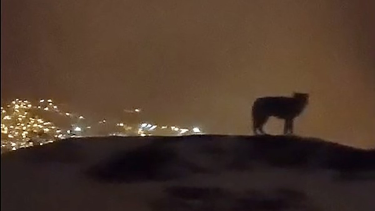 Hakkari'de gece saatlerinde bir tepeden şehir merkezinin ışıklarını izleyen kurt görenleri şaşkına çevirdi.
