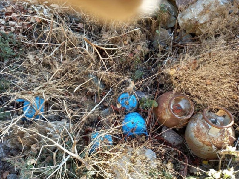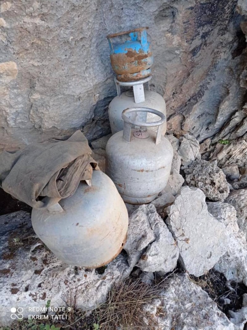 PKK/KCK silahlı terör örgütüne ait; 1 adet silah üstü dürbün, 5 adet 12 kilogramlık büyük tüp, 6 adet küçük tüp, 1 adet kalaşnikof piyade tüfeği dipçiği, 1 adet leşker kıyafeti ele geçirilmiştir.