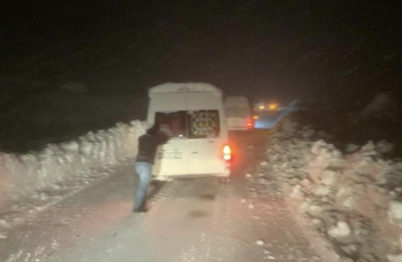 Kar yağışı ve buzlanmanın etkisiyle yolda kalan vatandaşlar ise diğer sürücülerin desteği ile yola çıkabildi.