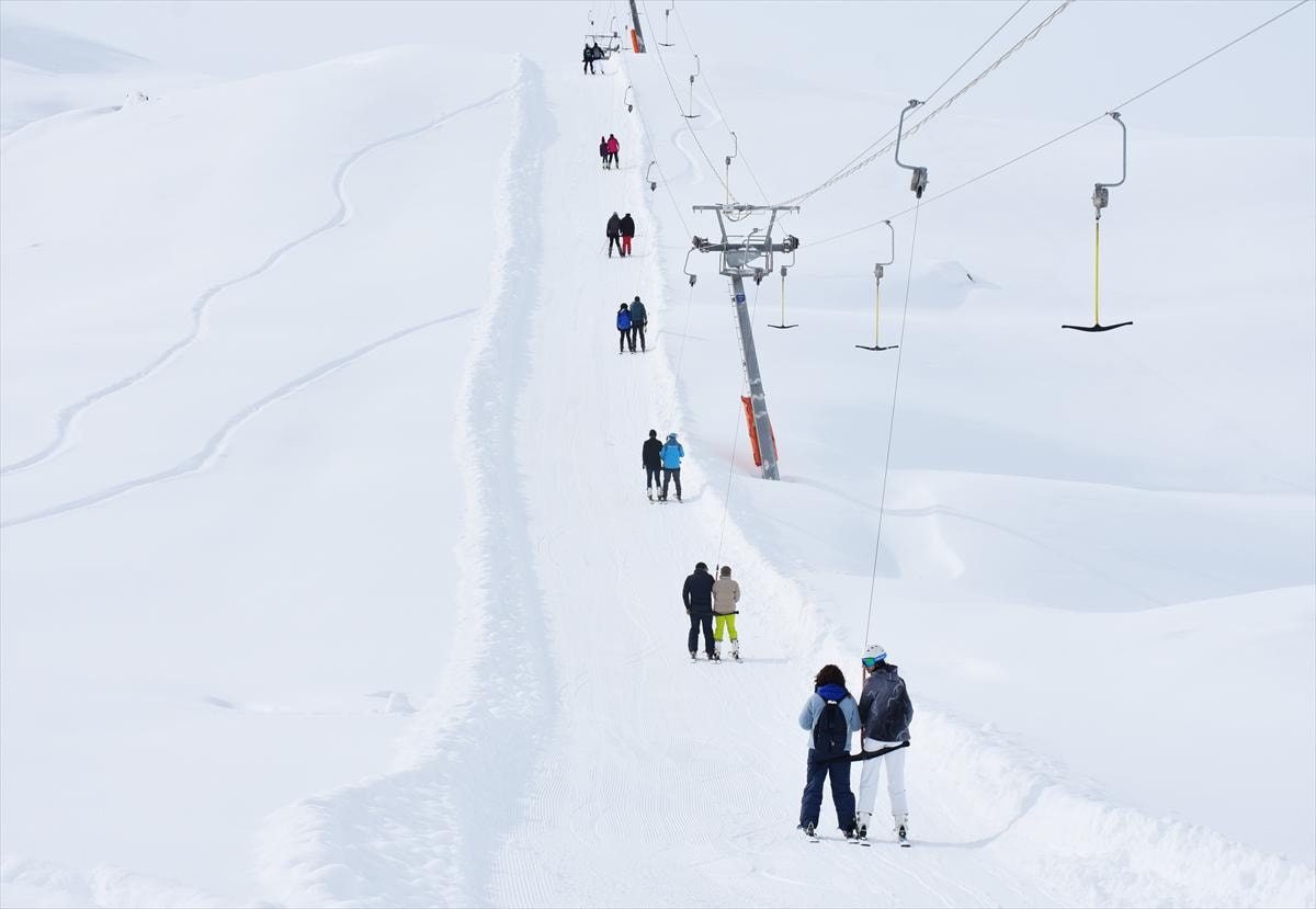 Teleski ve telesiyejle 3 bin rakımdaki pistlere çıkan ziyaretçiler, şehir merkezi ve beyaza bürünen yayla ile yüksek noktaların izlenebildiği bölgede manzaraya karşı kayak yapmanın keyfini yaşadı.