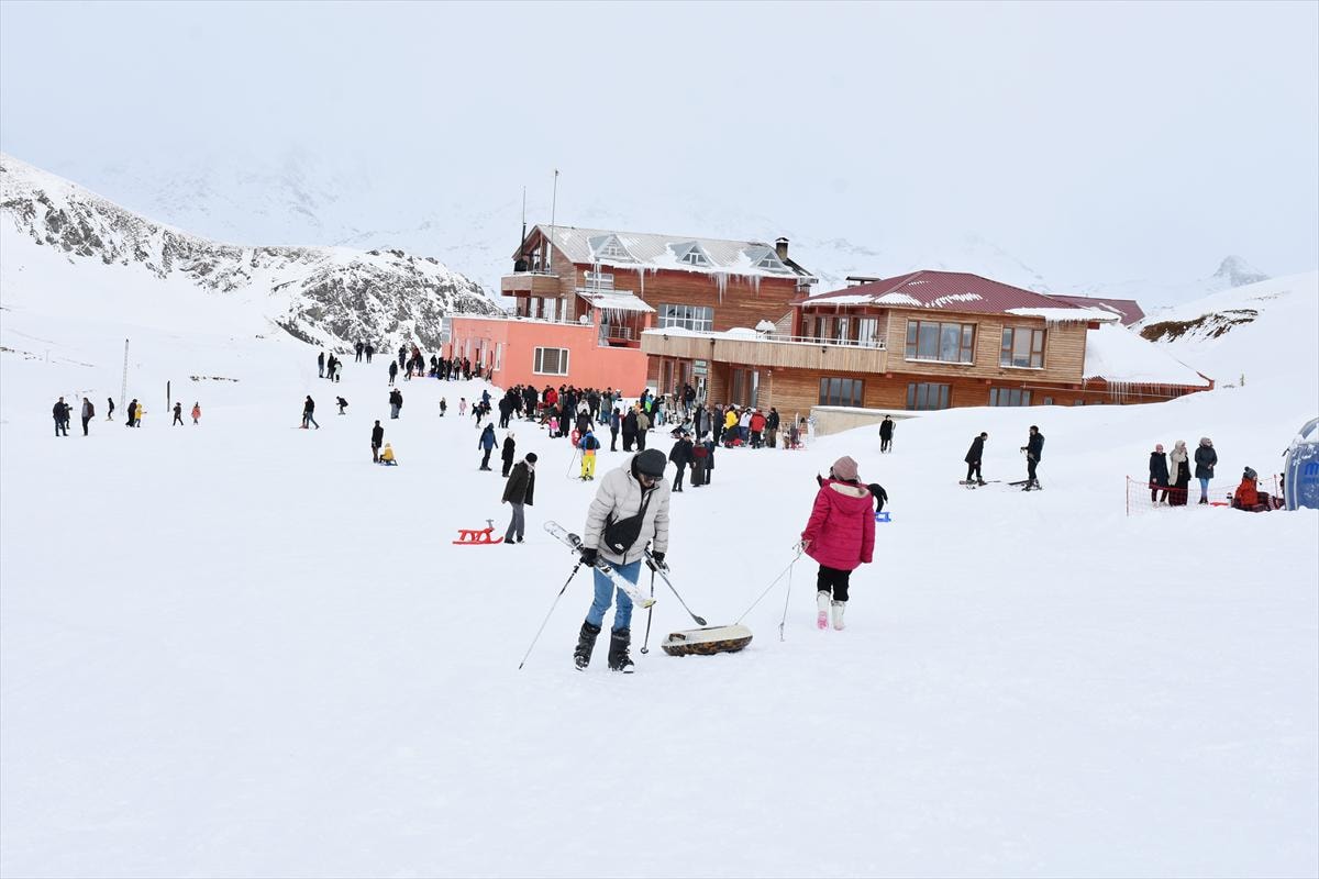 Hakkari'de kent merkezine 12 kilometre mesafedeki kayak merkezinde, profesyonel ve acemi kayakçılar ile buraya aileleriyle gelen çocuklar, snowboard, kayak takımları ve kızaklarla kaydı.