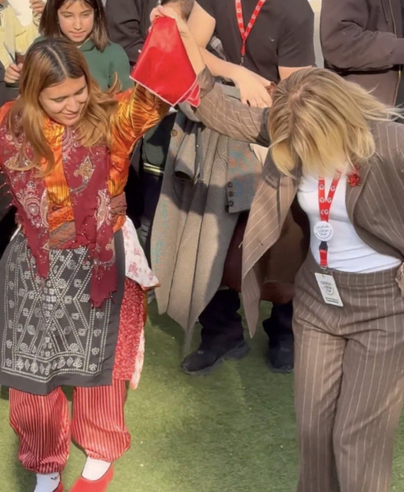 Adıyaman'a oğlu ile gelen Ergen, anaokulu açılışının ardından halay çeken ekibe dahil oldu.