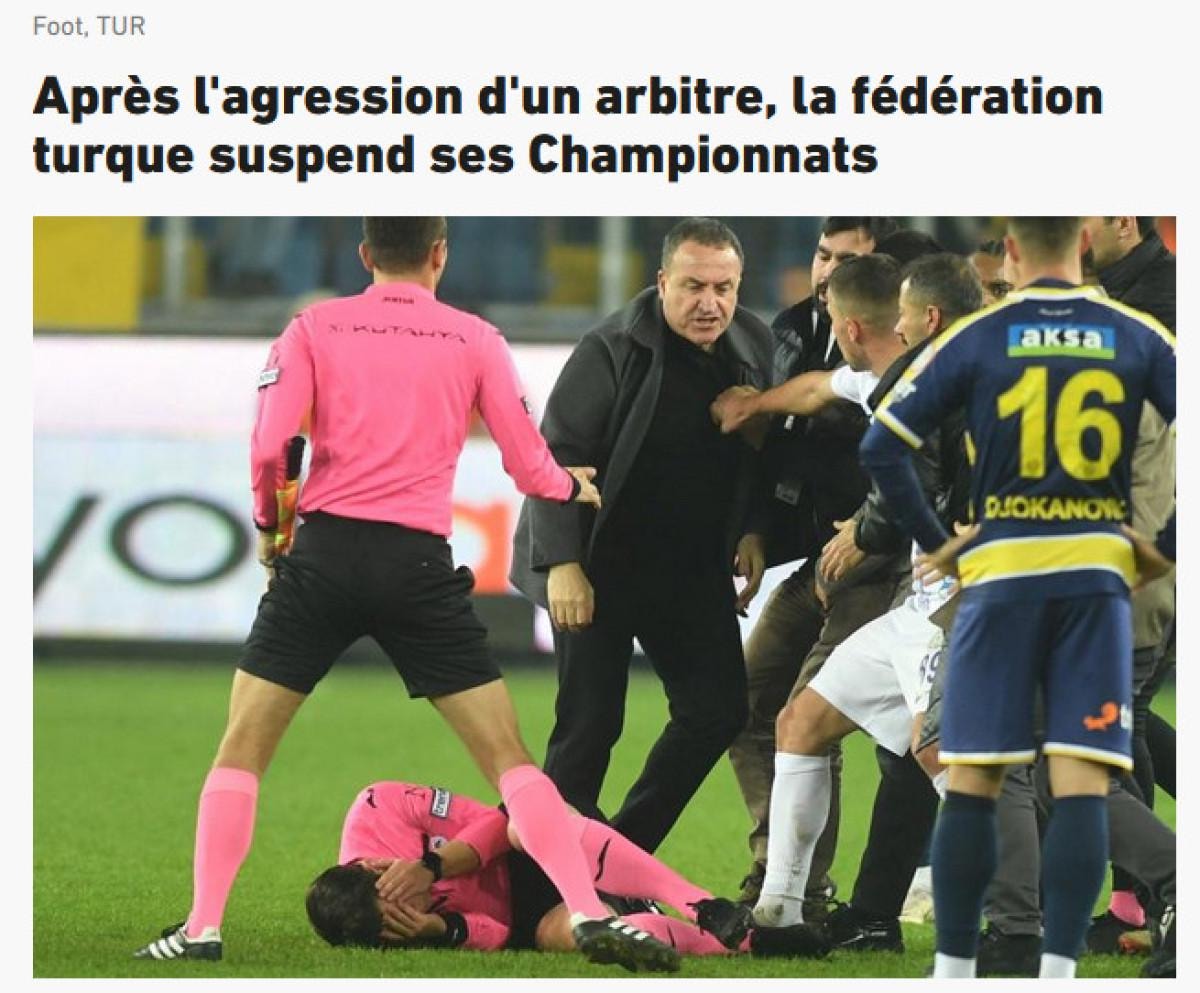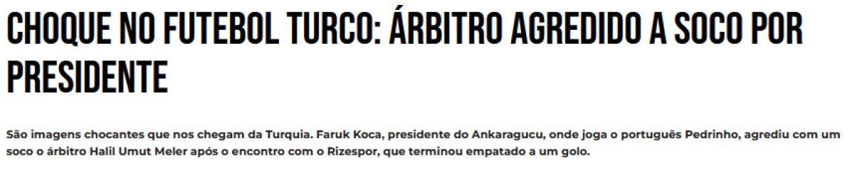 "Bunlar Türkiye'den bize ulaşan şok edici görüntüler. Portekizli Pedrinho'nun oynadığı Ankaragücü Başkanı Faruk Koca, Rizespor ile 1-1 berabere biten karşılaşmanın ardından hakem Halil Umut Meler'e yumrukla saldırdı."