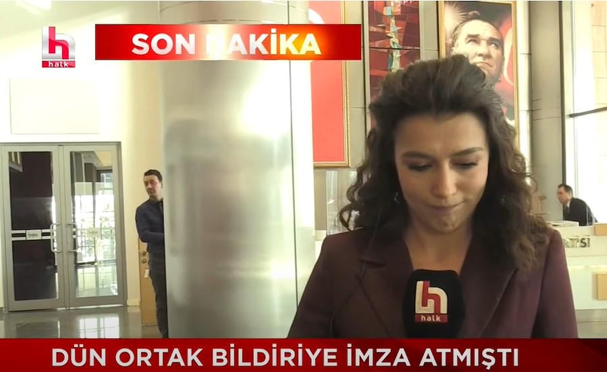 Parti binasında canlı yayın yapan Halk TV muhabirinin gelişmeleri aktardığı sırada aniden yayına giren bir CHP'li, "Yazıklar olsun Meral Akşener yazıklar olsun" diye bağırıp gitti.