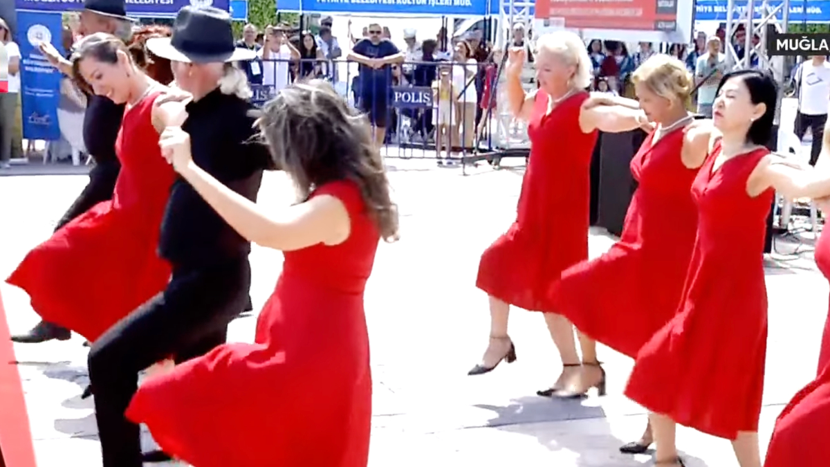 Fethiye Belediye Başkanı Alim Karaca'nın da katıldığı programda, dakikalarca süren sirtaki gündem oldu.