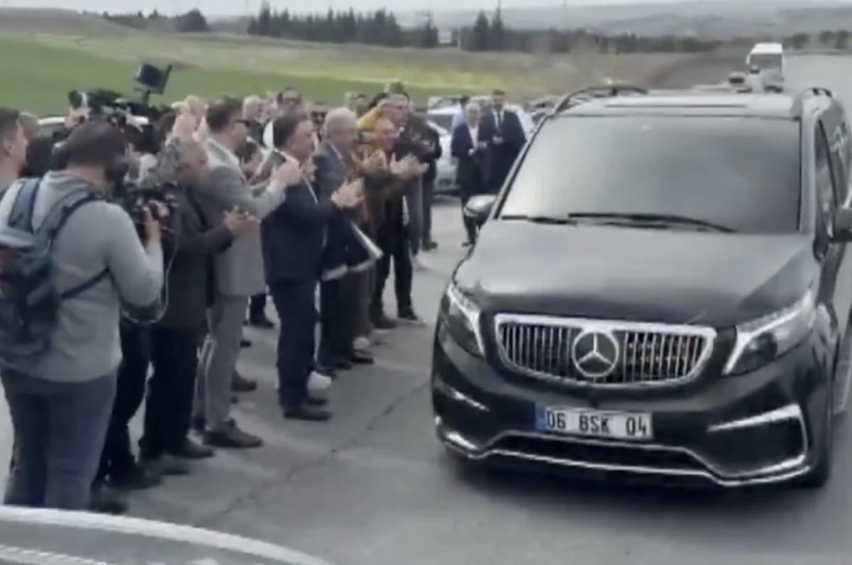 Kılıçdaroğlu'nun araçtan inerek partililerle selamlaşması ve bir destekçisinin elini öpmesi dikkat çekti.