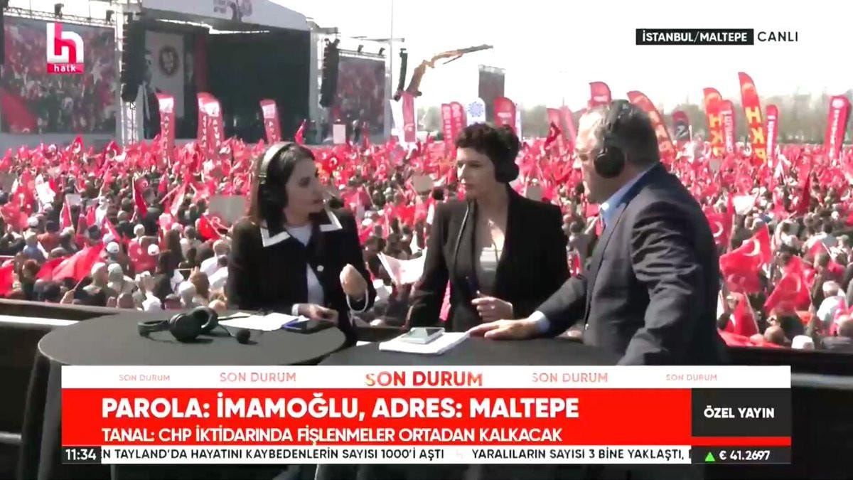 Dün İstanbul Maltepe'de gerçekleşen CHP mitinginde canlı yayına geçen Halk TV ekranlarında dikkat çeken diyaloglar yaşandı.