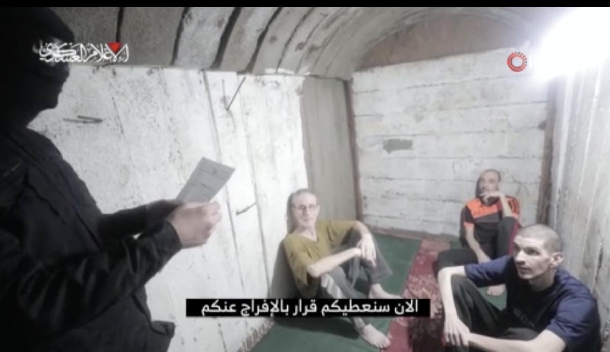 Hamas, tarafından yayınlanan videoda serbest bırakılan Ohad Ben Ami, Eli Sharabi ve Or Levy'nin Gazze Şeridi’nde bulunan tüneldeki görüntüleri yer aldı.