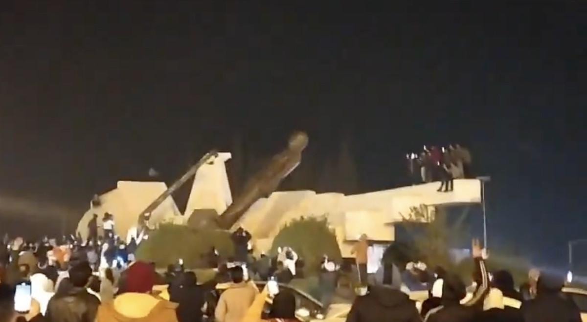 Kent meydanına toplanan muhalifler buradaki Hafız Esad'ın heykelini de yıktı.