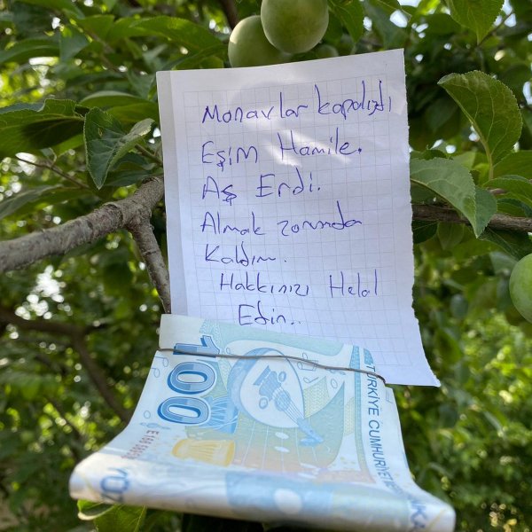 HAMİLE EŞİ İÇİN TARLADAN ERİK ALDI, NOT YAZIP BİR DE ÜSTÜNE PARA BIRAKTI