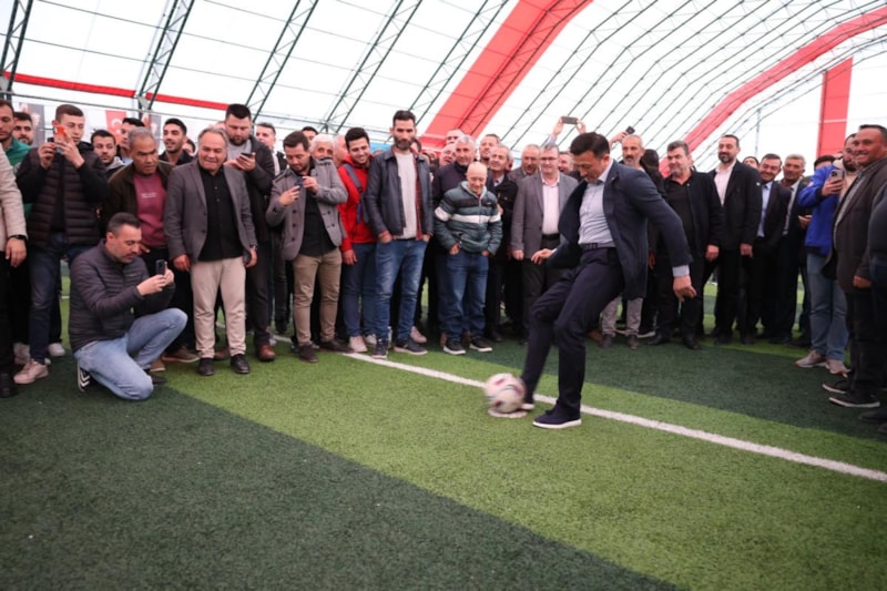 Daha sonra esnafı ziyaret eden Dağ, Cumhur İttifakı Kınık Belediye Başkan adayı Sami Mollaahmet ile birlikte halı saha açılışına katıldı.