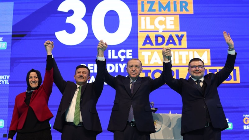 AK Parti'nin İzmir'deki ilçe belediye başkan adayları belli oldu. Halkapınar Spor Salonu'nda düzenlenen tanıtım toplantısında konuşan İzmir Büyükşehir Belediye Başkan adayı Hamza Dağ, İzmir'i hak ettiği hizmete kavuşturacaklarını söyledi.