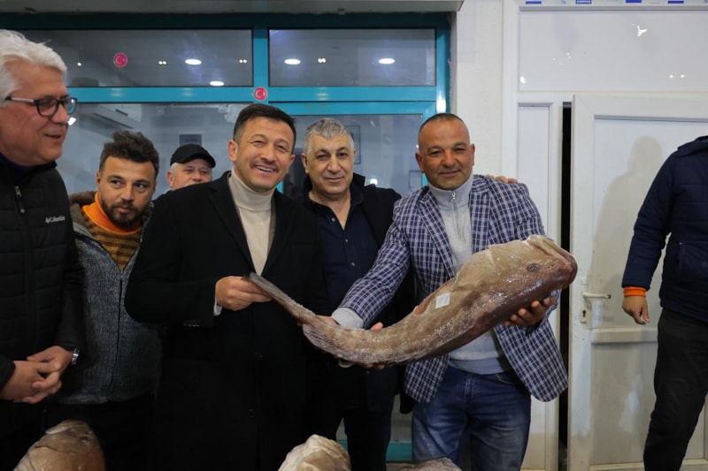 Hal esnafı tarafından sevgi gösterileriyle karşılanan Dağ, mezata katılarak bir kasa balık da satın aldı.