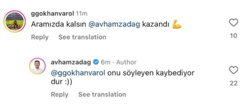 Bir başka vatandaşın "Aramızda kalsın Hamza Dağ kazandı" yorumuna Dağ, "Onu söyleyen kaybediyor dur" yanıtını verdi.