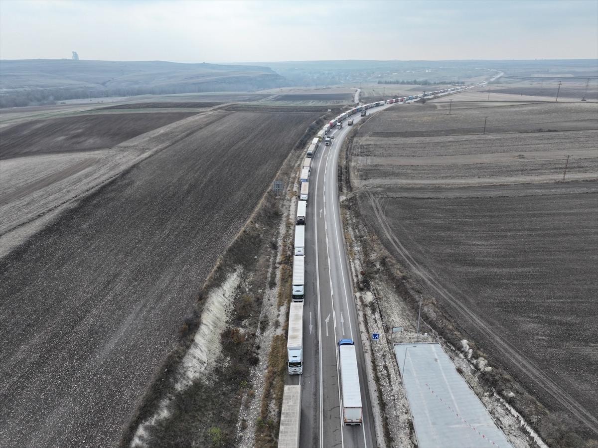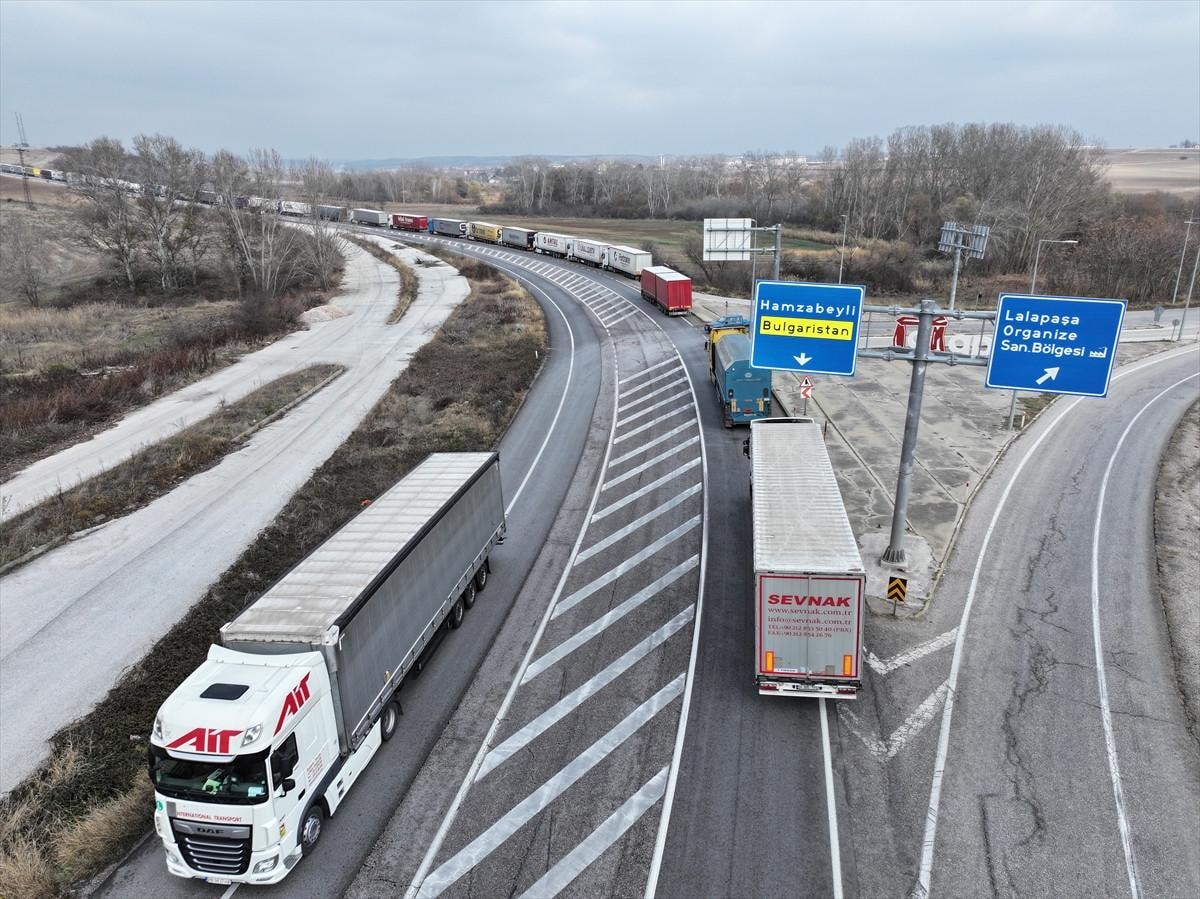 Hamzabeyli Sınır Kapısı'nda Avrupa’ya geçiş için yüzlerce tır sürücüsü, araçlarında bekleyişlerini sürdürüyor.