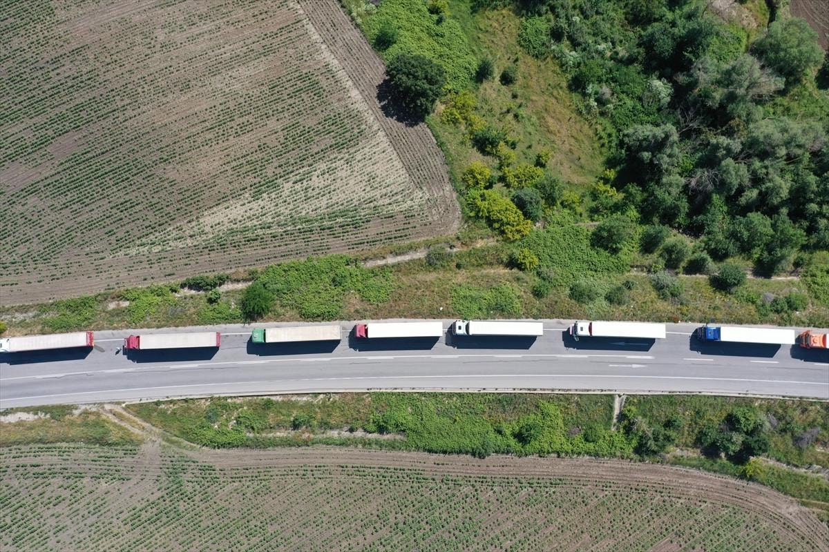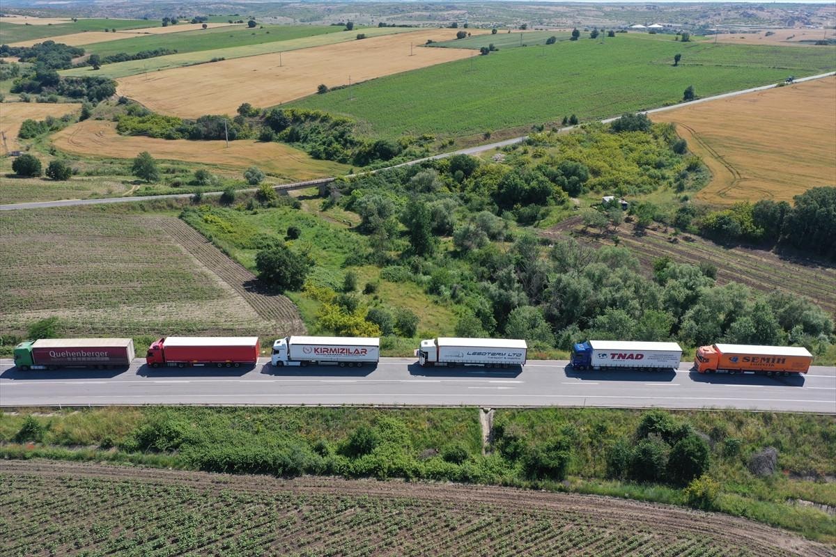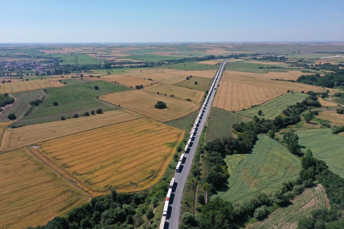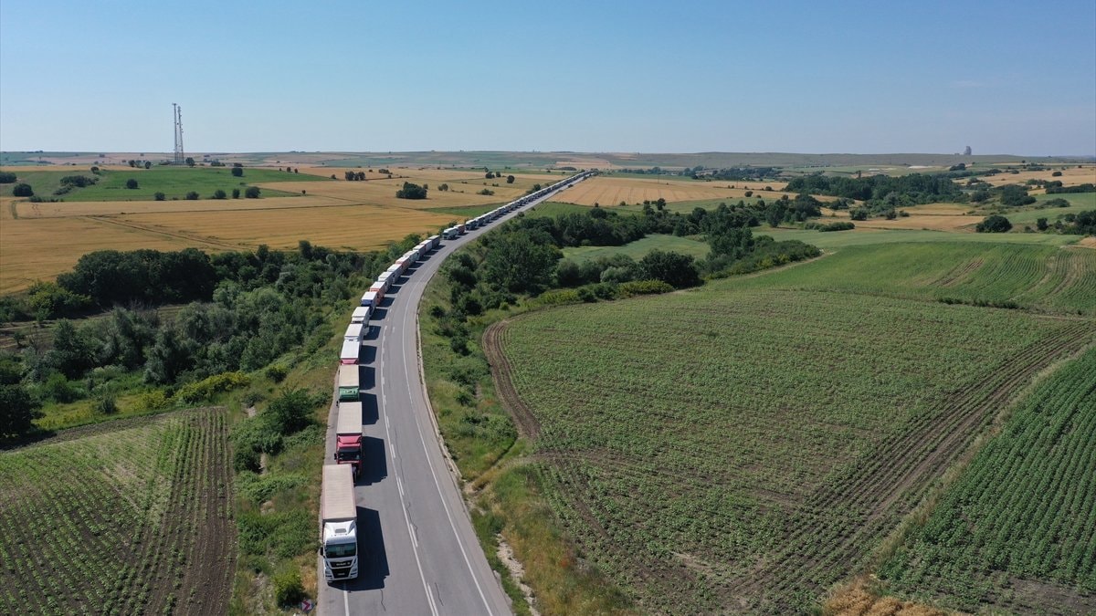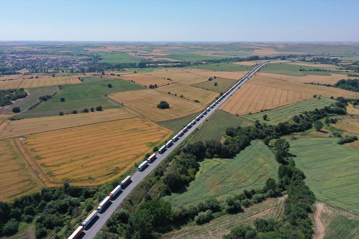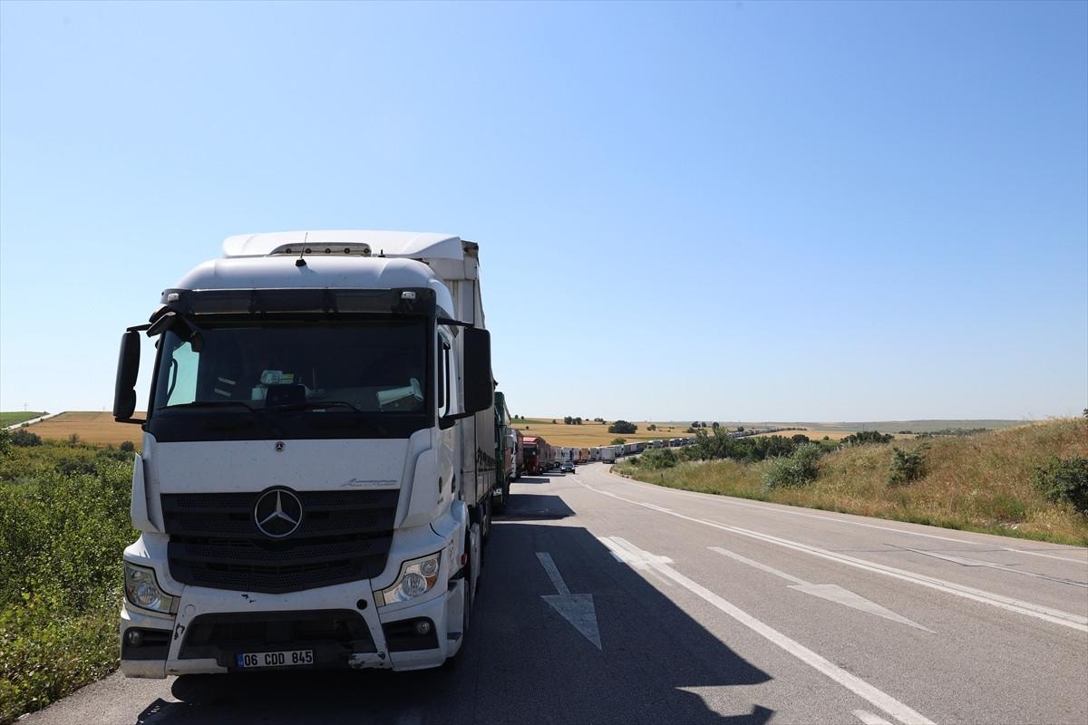 Yurt dışına çıkmak için bekleyen tırlar, 24 kilometrelik kuyruk oluşturdu.