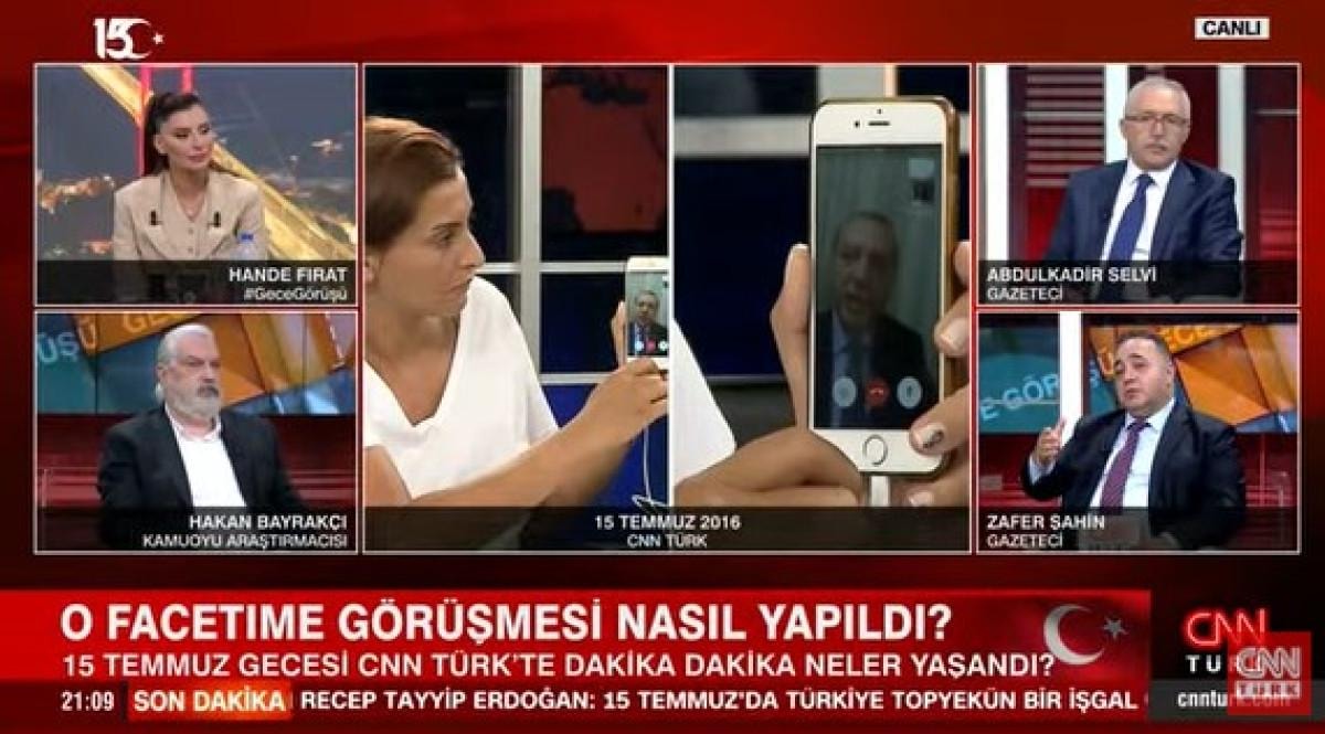 CNN Türk canlı yayınında gazeteci Hande Fırat, 15 Temmuz gecesi Cumhurbaşkanı Recep Tayyip Erdoğan ile yaptığı FaceTime görüşmesini anlattı.