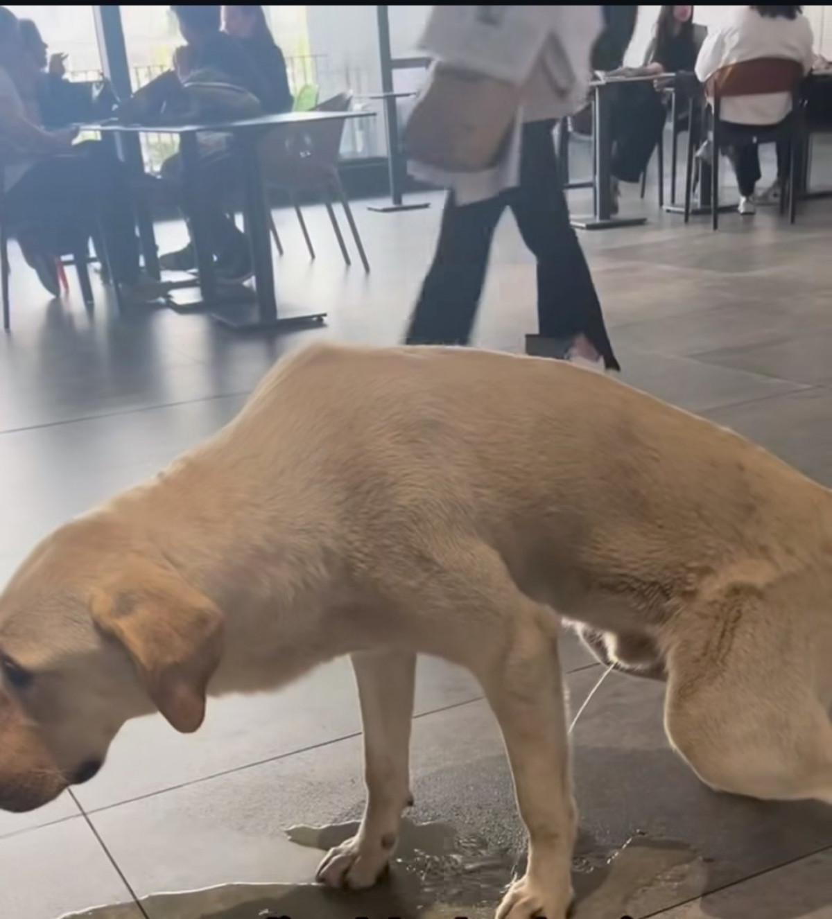 Hastanenin kafeteryasında tuvaletini yapan bir köpek, görenleri hayrete düşürdü.