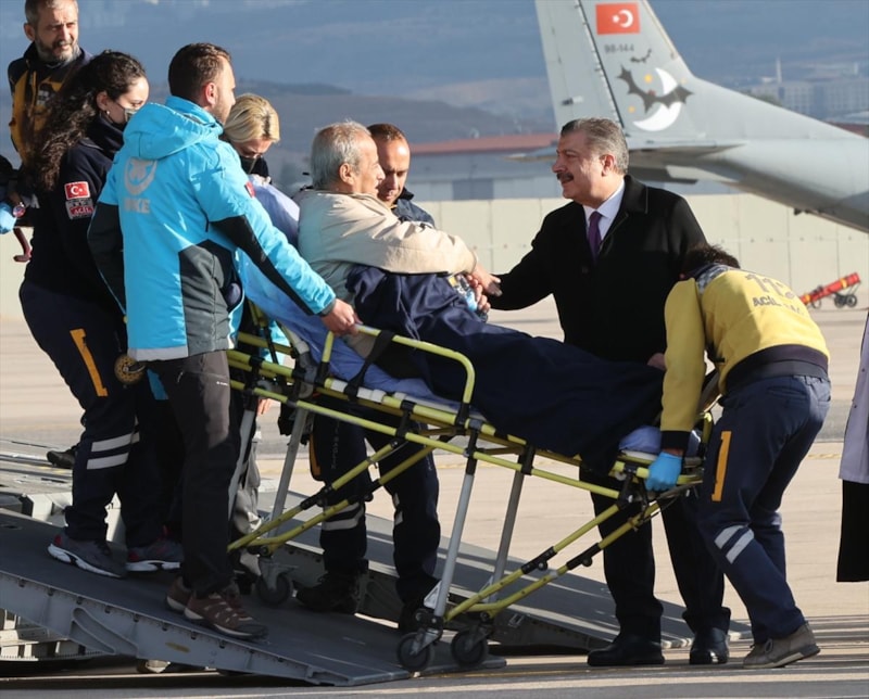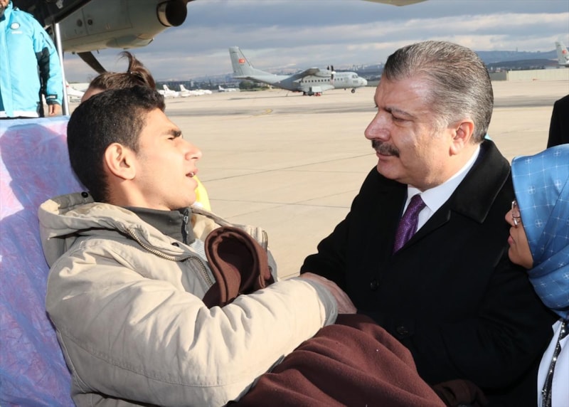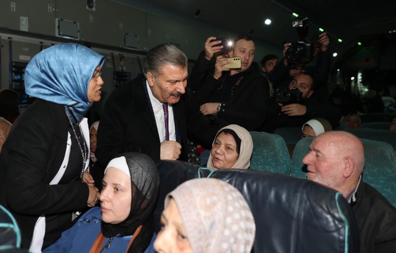 Hastaları uçağın kapısında tek tek Sağlık Bakanı Fahrettin Koca karşıladı.