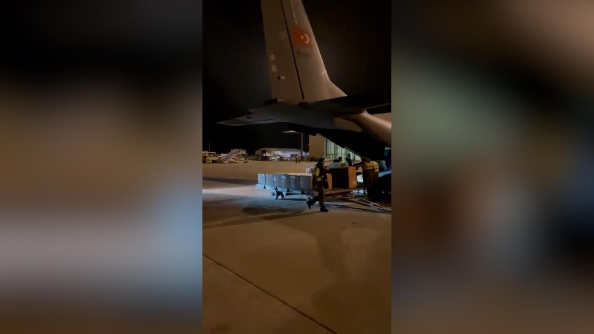 "Etimesgut ve İncirlik’ten kalkan Hava Kuvvetlerimize ait CN-235 uçaklarımız, pistin yeniden onarılmasının ardından Hatay Havalimanına insani yardım malzemelerini ulaştırdı. Hep Birlikte Türkiye"