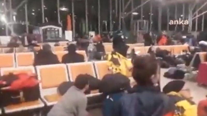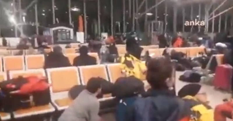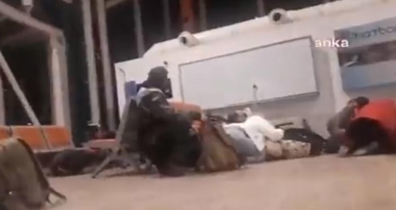Hatay'da akşam saatlerinde yaşanılan 6.4 ve 5.8 şiddetindeki depremlerde havalimanında olan yolcuların yaşadığı panik kameraya yansıdı.