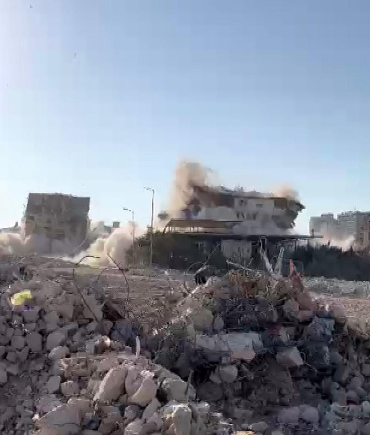 Antakya ilçesinde ağır hasarlı binaların yıkımını hızlandırmak için dinamitle patlatma yöntemi kullanılmaya başlanmıştı.
