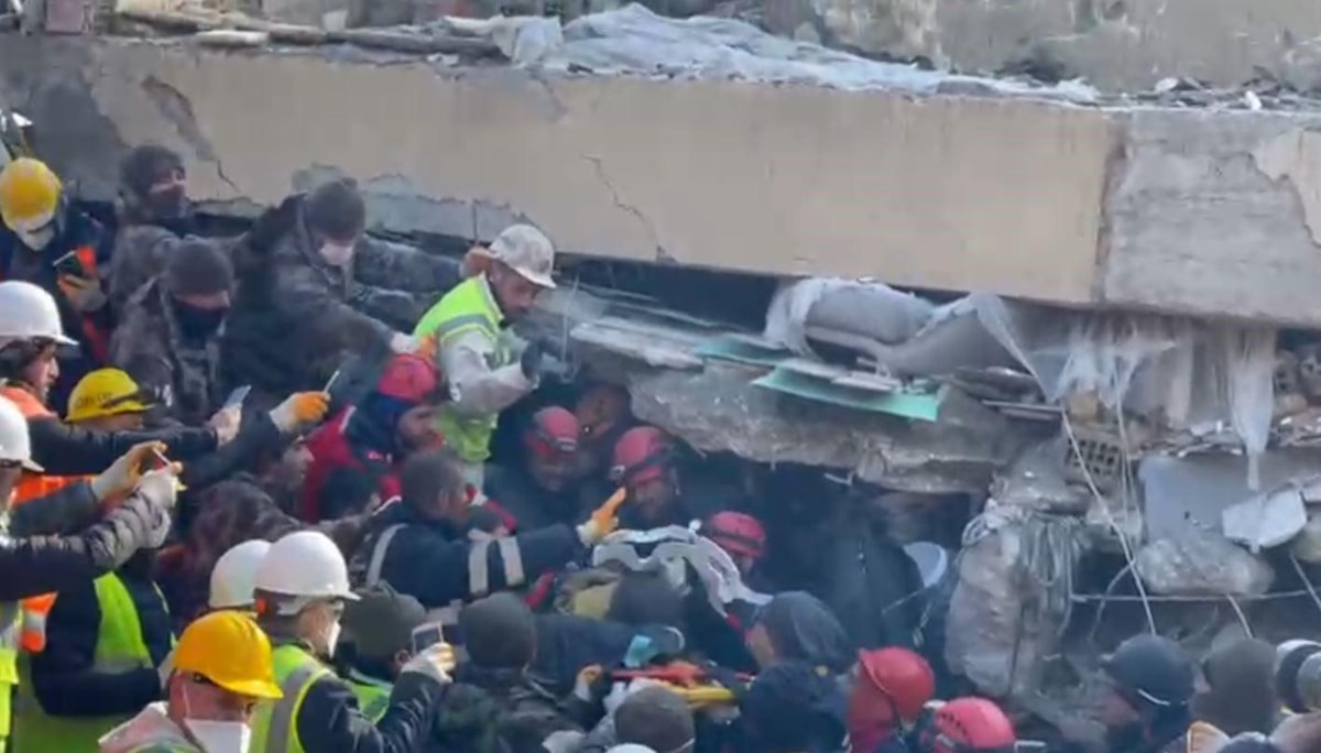 Zamana karşı yarışan ekipler, 3 saatlik hummalı bir çalışmanın ardından Fatmanur, Münire ve Ramazan ile annelerini enkazdan sağ olarak çıkardı.