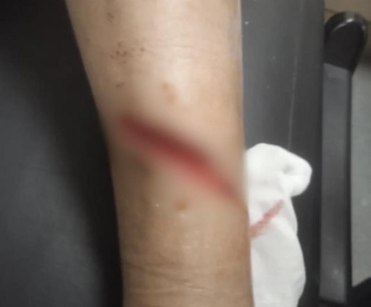 Saldırı sonrasında bacağında yarık oluşan kadın, hastanede tedavi edildi ve ayağına dikiş atıldı.