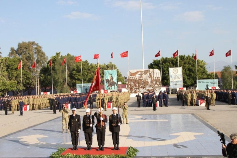Sancak geçişinin ardından İskenderun Deniz Üs Komutanı Tuğamiral Osman Çevik, askerleri ve aileleri selamladı. Törende saygı duruşunda bulunulması ve İstiklal Marşı'nın okunmasından sonra konuşma yapan İskenderun Deniz Er Eğitim Alay Komutanı Deniz Piyade Kurmay Albay Hasan Ardıç, 3 hafta önce birliğe katılarak temel askerlik eğitimini başarıyla tamamlayan bahriyelilerin yeminine tanıklık ettiklerini söyledi.