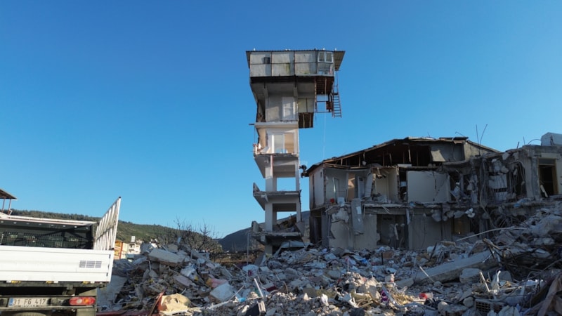 Kahramanmaraş merkezli depremlerde Hatay’da yıkılan bir binada güvercin yuvasının bulunduğu kolonlarının yıkılmaması dikkat çekti.