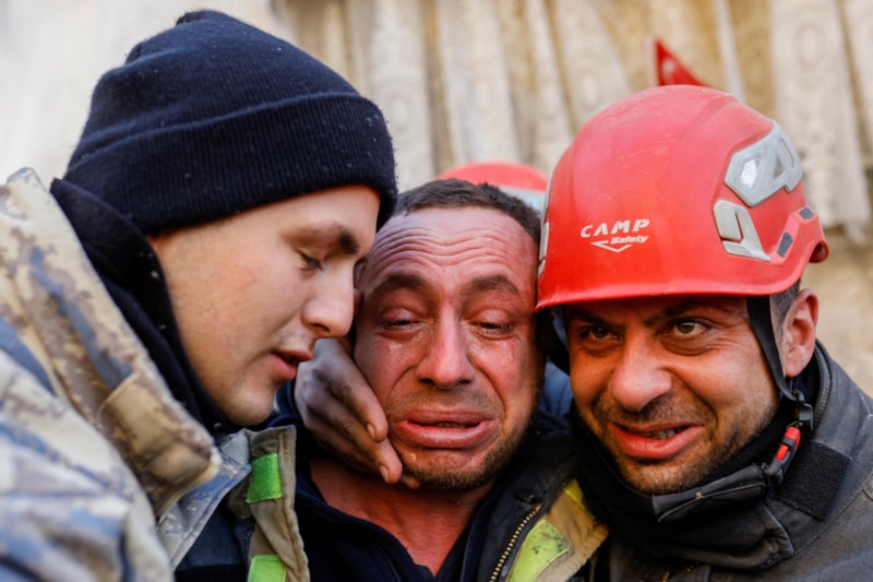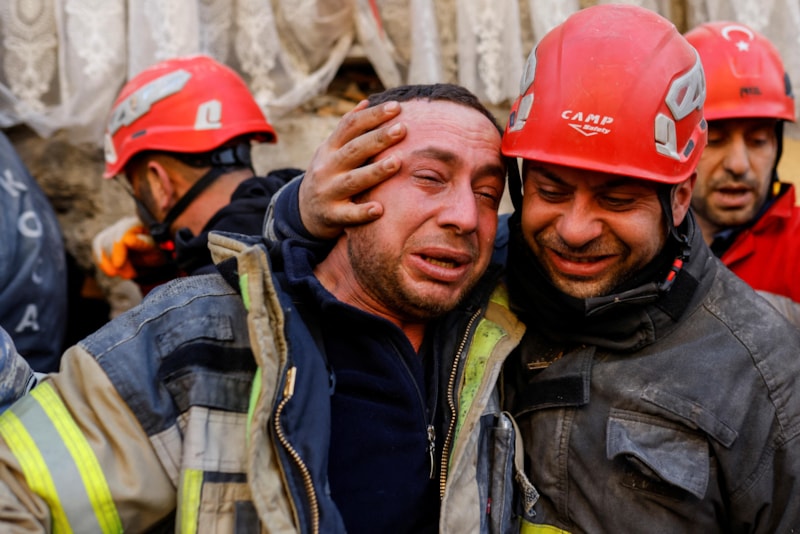 Enkazın altındaki vatandaşı çıkaran ekipler, mücadelelerinin karşılığını alınca gözyaşlarını tutamadı. Ekiplerin birbirine sarılarak ağladığı anlar görenleri duygulandırdı.