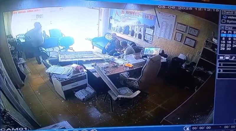 O sırada ofiste bulunan muhtar ve misafirleri büyük panik yaşadı.