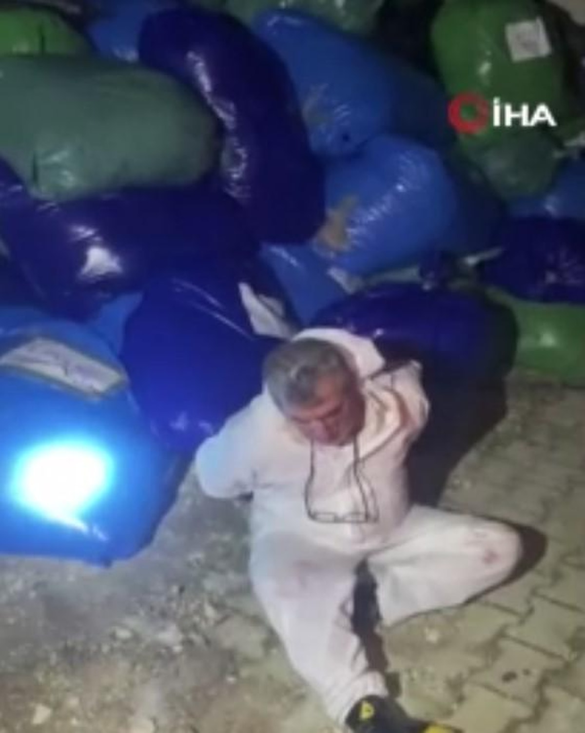 Antakya Kapalı Spor Salonu yanında kendini yardım kuruluşu görevlisi olarak tanıtan şahsı takip eden ekipler, şüpheliyi malzemelerle birlikte depoda yakaladı.