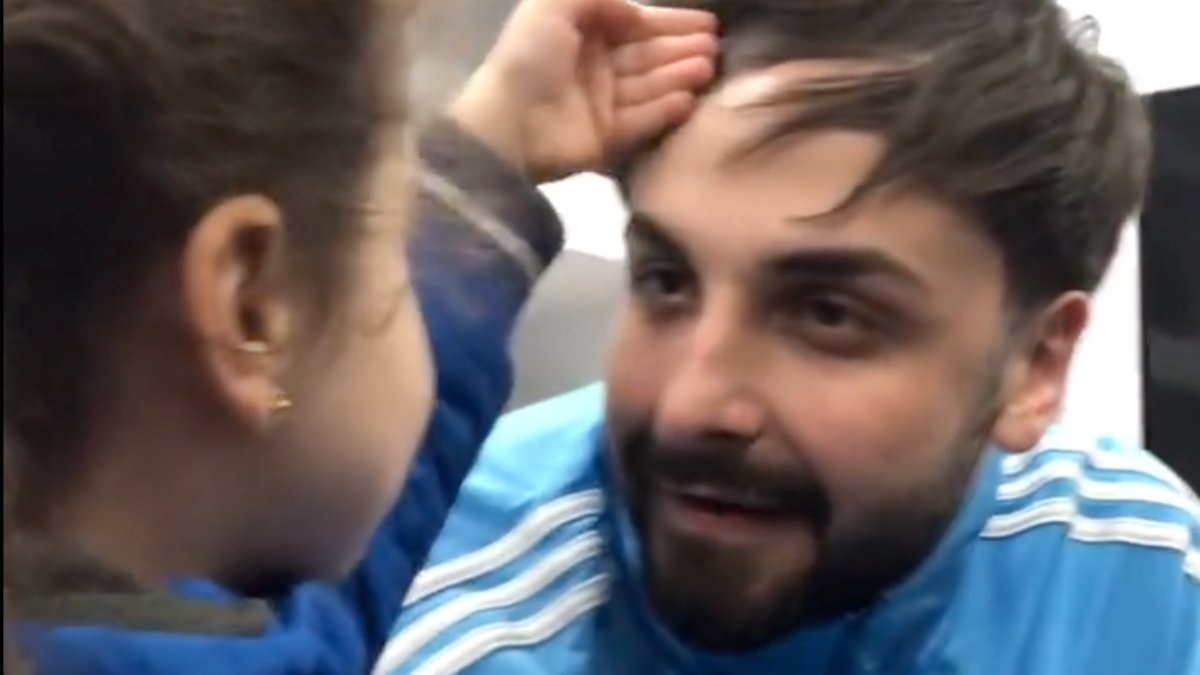 Yürekleri ısıtan bu anlarda yaşadığı şaşkınlık ve mutluluk yüzünden okunan Sefo da, minik depremzedenin yüzünü sevdi.