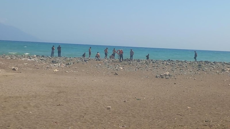 Hatay Samandağ'da hava sıcaklığının 40 dereceye ulaşmasıyla serinlemek isteyen 5 genç, Samandağ sahilinden denize girdi.