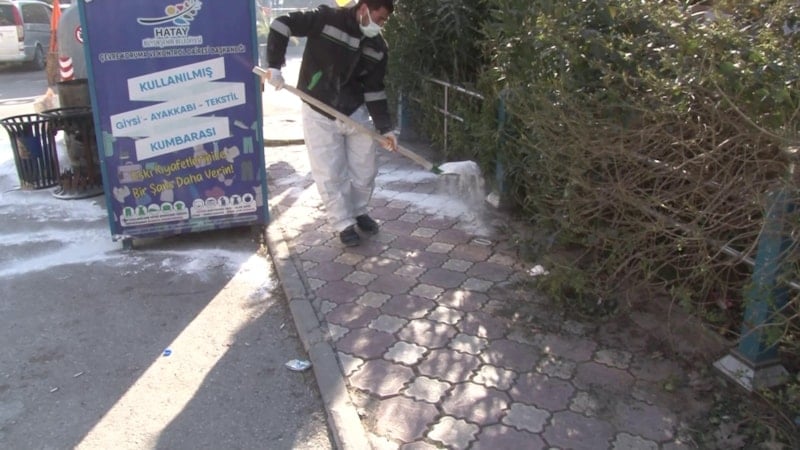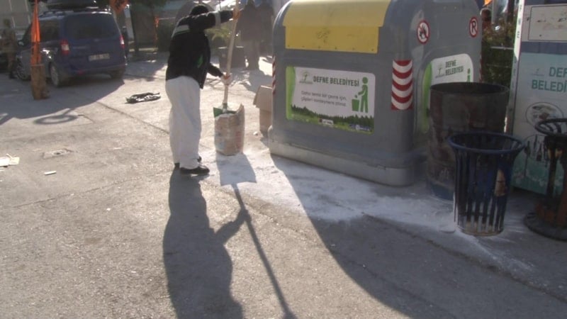 Depremin ardından çadır ve konteyner kentlerin bulunduğu afet bölgelerinde bulaşıcı hastalık ihtimaline karşı Sağlık Bakanlığı koordinasyonunda alınan önlemler kapsamında riskli bölgelere kireçleme işlemi gerçekleştiriliyor.