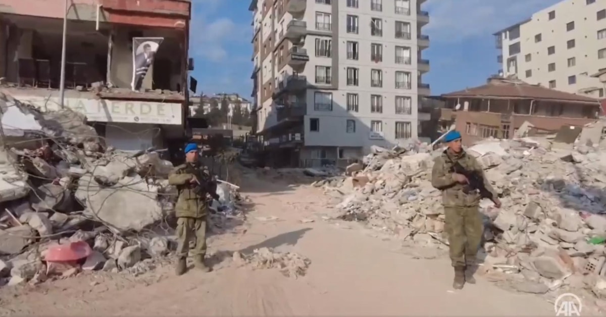 4'üncü Komando Tugayı personeli, Hatay'ın cadde ve sokaklarıyla, enkazların etrafında devriye faaliyetinde bulunuyor.