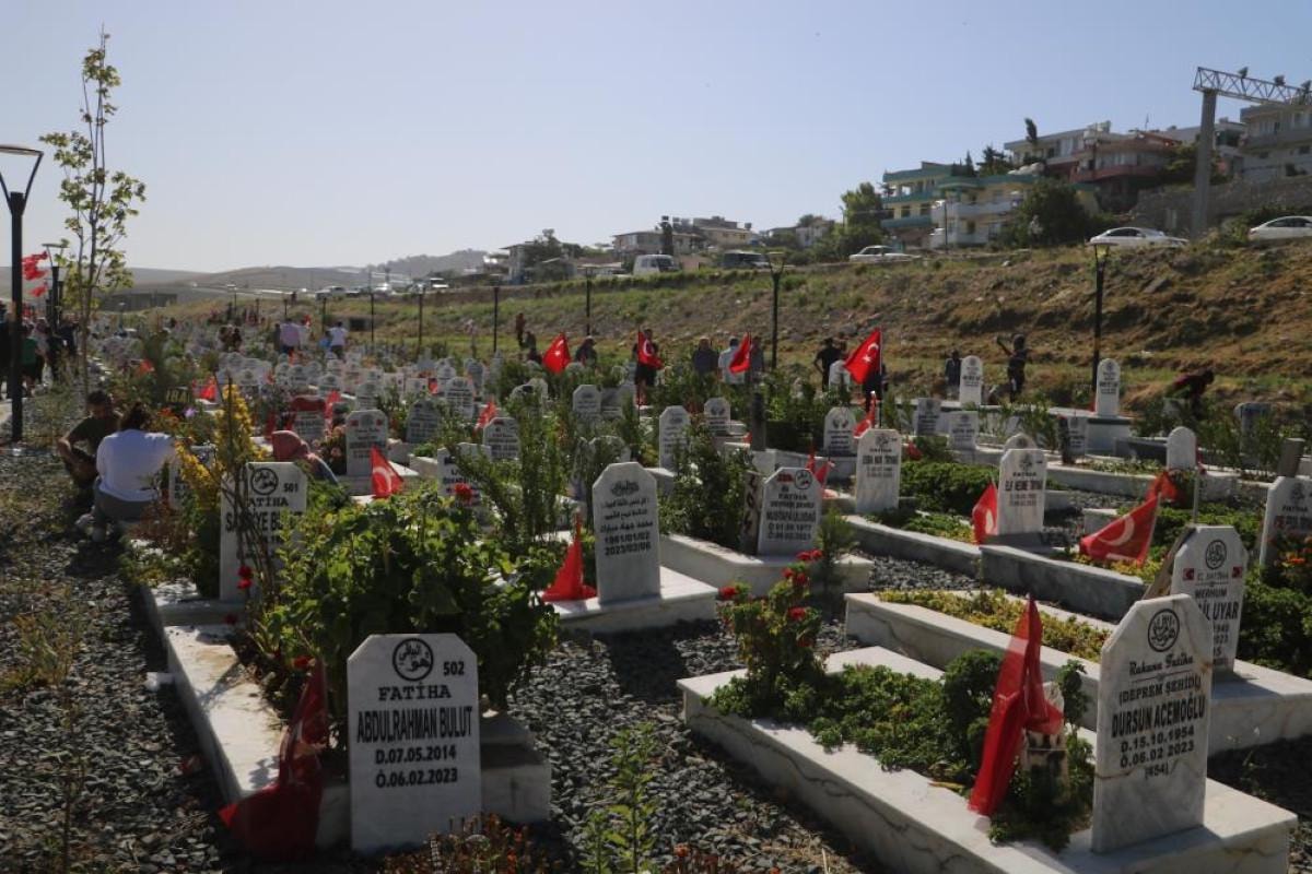 Her bayram olduğu gibi bu bayram da depremde yakınlarını kaybeden vatandaşlar, sabahın erken saatlerinden itibaren ziyaret için deprem mezarlığına geldiler.
