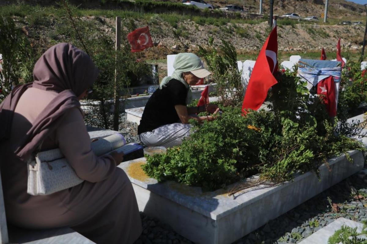 Asrın felaketinde vefat eden evladının ve torunlarının mezarını ziyarete gelen Kader Ayvas, “Bize bayram gelmedi, benim bir oğlum vardı onu ve torunlarımı kaybettim. Ben kayboldum, onlar ölmedi biz öldük. Tarifi yok, sözün bittiği yerdeyiz. Zor bir bayram, burada durmak bile istemiyorum. 5 çocuğumu kaybettim” dedi.