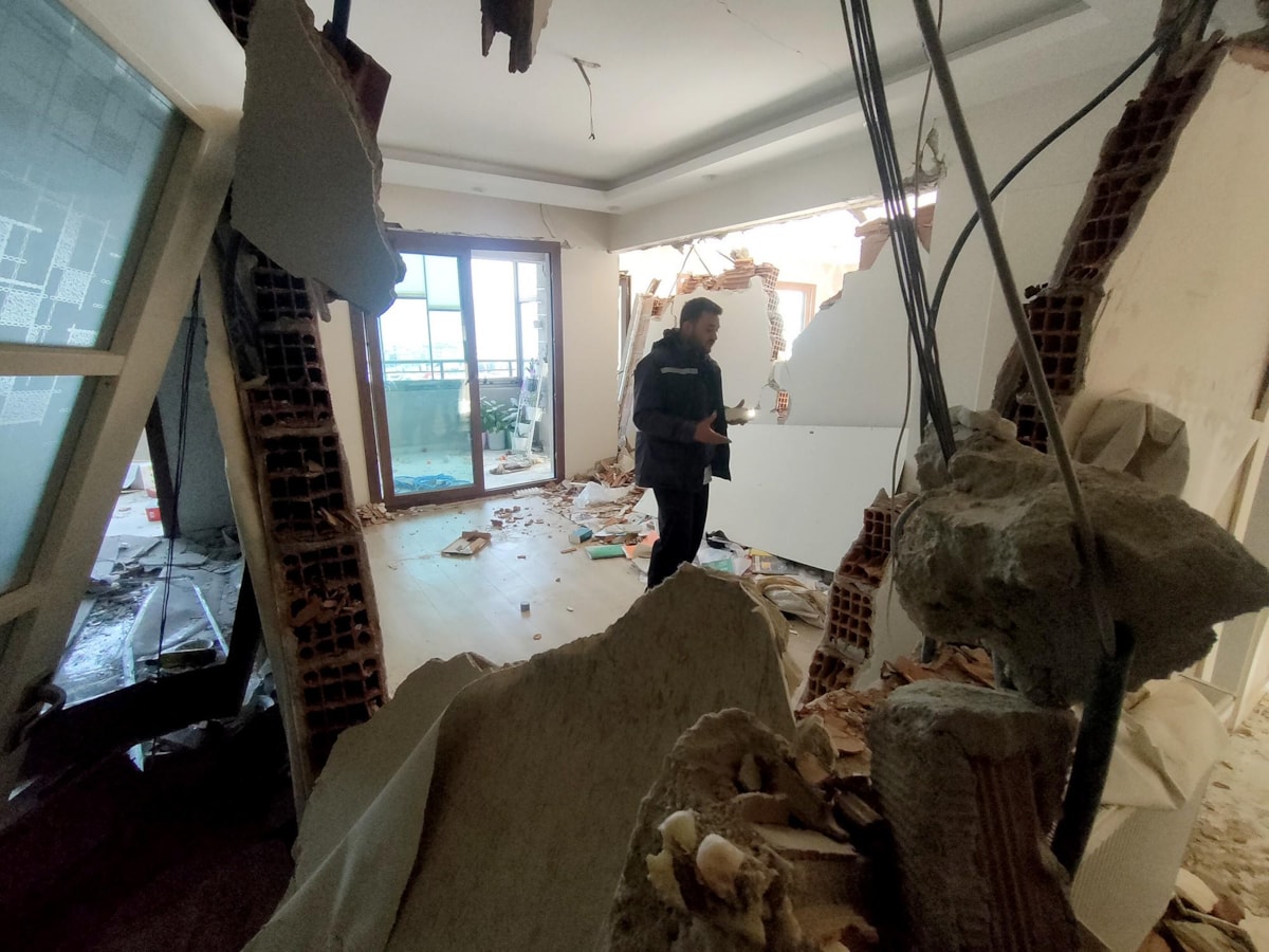 Yaklaşık 50 kişinin yaşadığı binada, odaların içindeki tüm duvarlar yıkılmasına rağmen şans eseri hayatını kaybeden olmadı.
