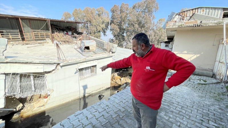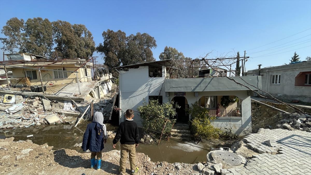 Depremden en çok etkilenen illerden biri olan Hatay'ın Antakya ilçesinde, depremler nedeniyle etrafında çöküntü oluşan bazı müstakil evler görüntülendi.