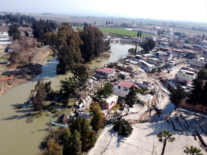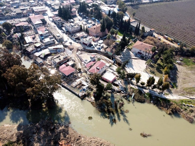 Müstakil evler kentin simgesi haline gelen Asi Nehrine doğru çöktü.