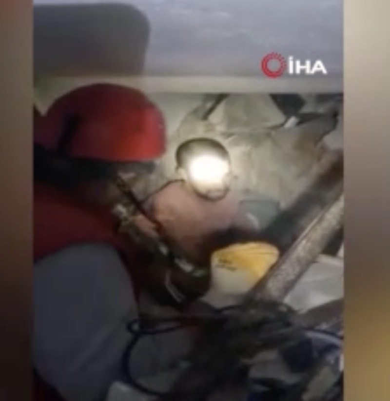 İki afetzedenin enkazdan kurtarılma anı kameraya yansıdı.