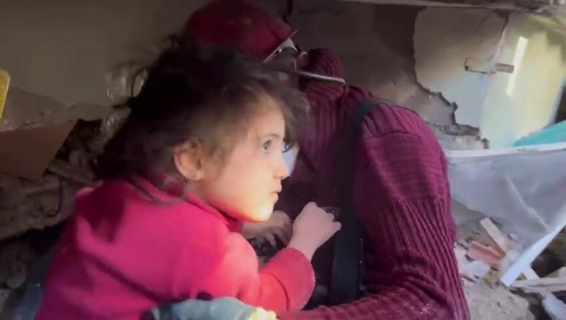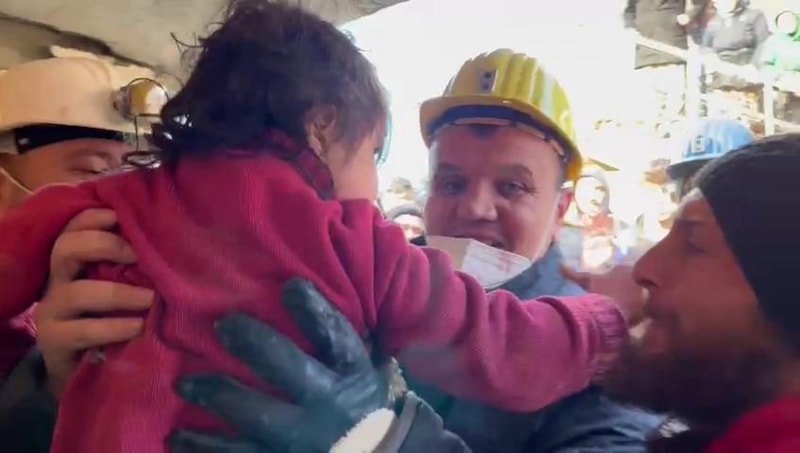 Enkaz altında kalan 5 yaşındaki Sidra, maden işçilerinin arama kurtarma çalışmalarıyla 35 saat sonra sağ kurtarıldı. O anlar ekiplerce görüntülendi.