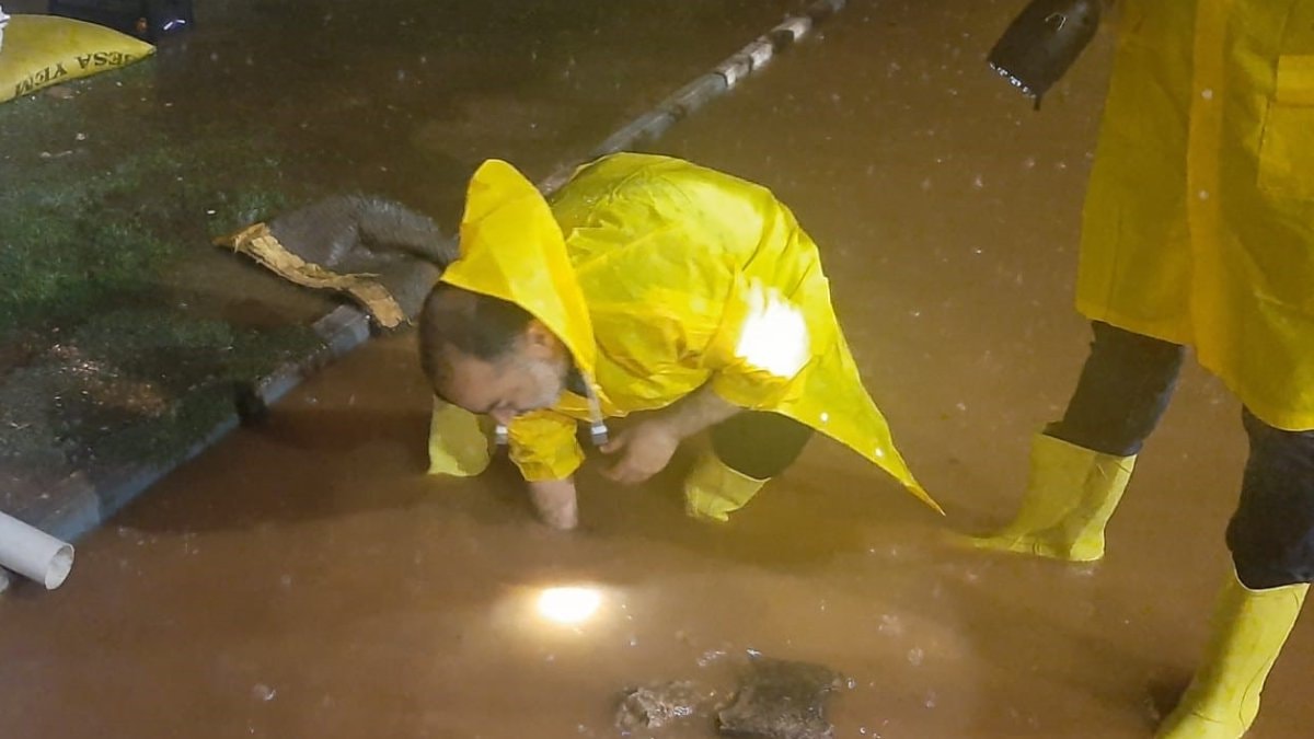 İlçe Gençlik ve Spor Müdürü tıkanan mazgalı elleriyle açmaya çalıştı