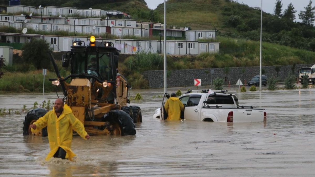 Kuvvetli yağış, Hatay’da pazar günü sabah saatlerinden itibaren etkili olmaya başladı. Yağışla birlikte derelerin debisi artarken yollarda araçlar mahsur kaldı.