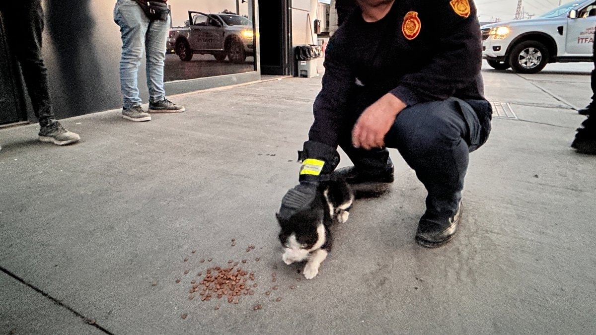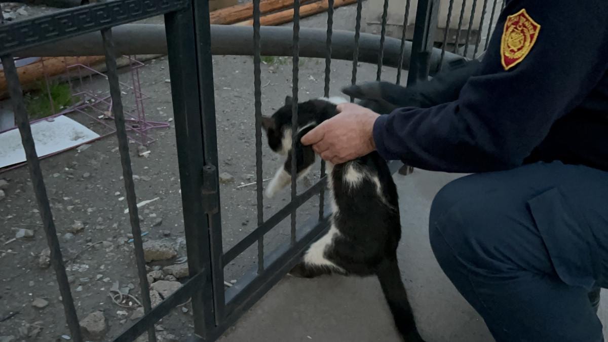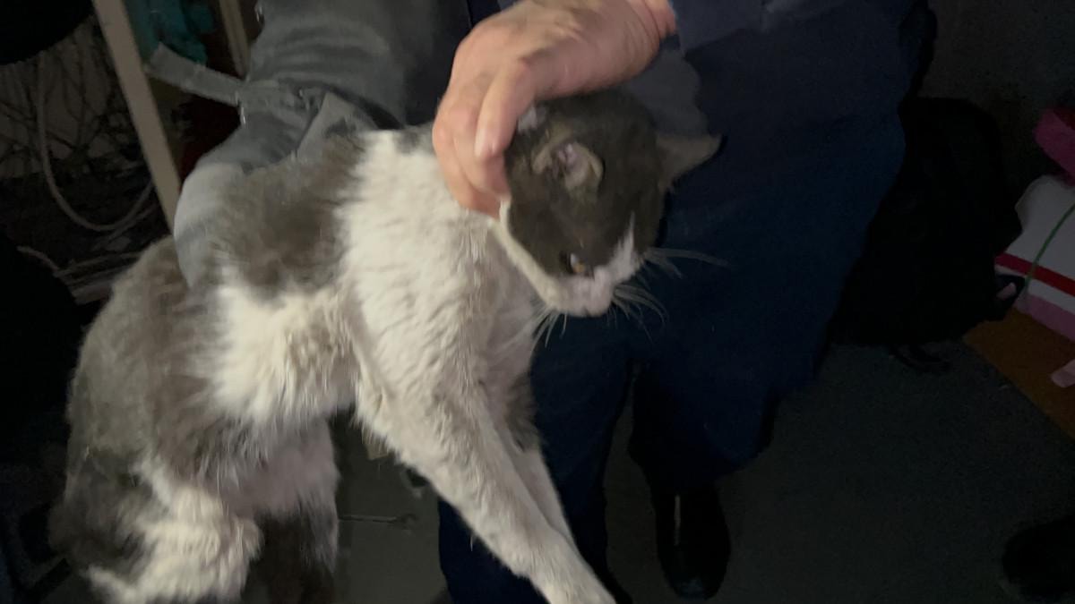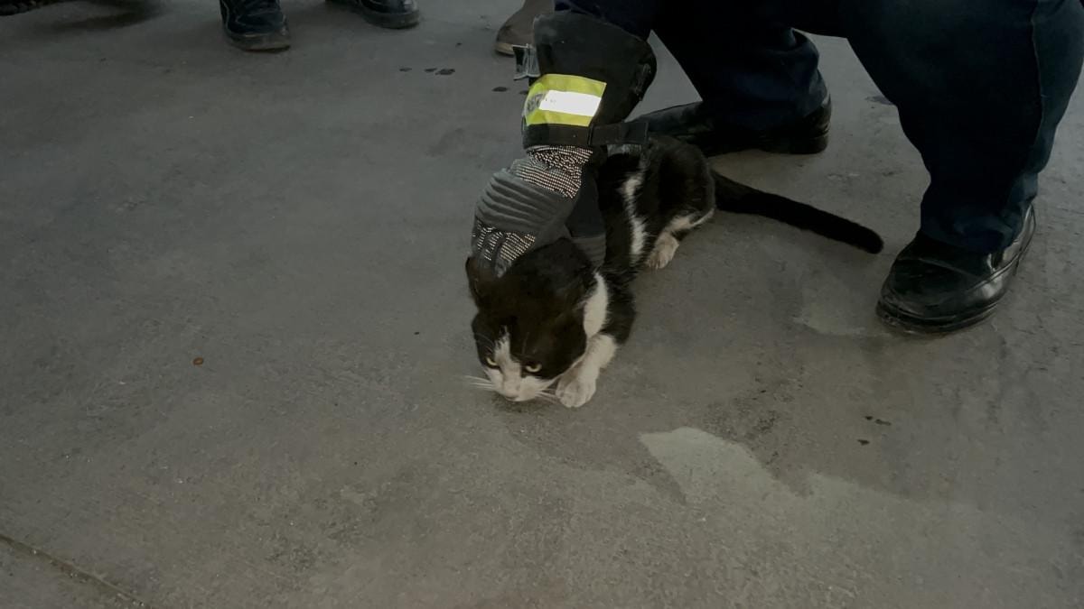 Olay yerine gelerek inceleme yapan çalışanlar, içeride bir kedi olduğunu fark etti.